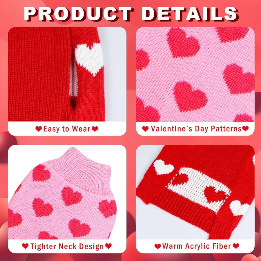 Made from soft, pet-friendly fabric, each sweater provides a snug yet comfortable fit without restricting movement. The two-pack offers extra value and variety, making it easy to rotate outfits or dress multiple pets in matching Valentine style.