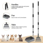 Made from durable materials, the rake efficiently gathers waste while the wide tray holds it securely for easy disposal. The long handles reduce bending and strain, making cleanup more comfortable and convenient. Ideal for use on grass, gravel, dirt, or hard surfaces, this set is a practical solution for everyday pet care.